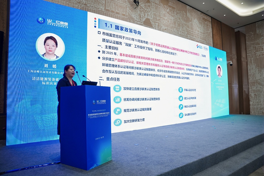 上海添唯认证技术有限公司总经理刘媛解读《清洁能源装备碳足迹试点认证》,阐明清洁能源装备碳足迹认证的核心目标和重点任务。